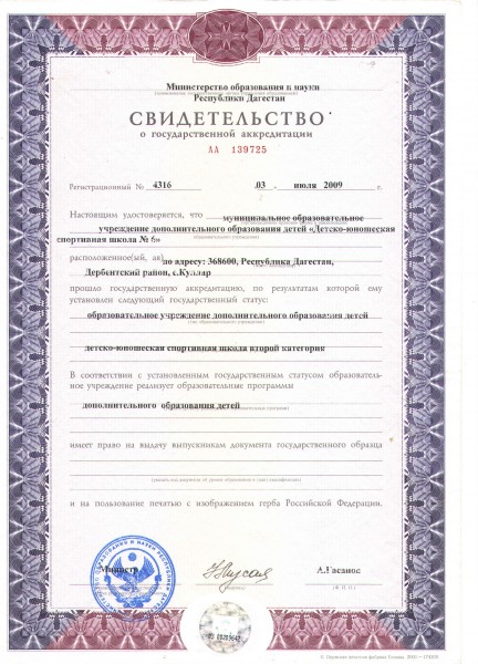 Свидетельство о государственной аккредитации